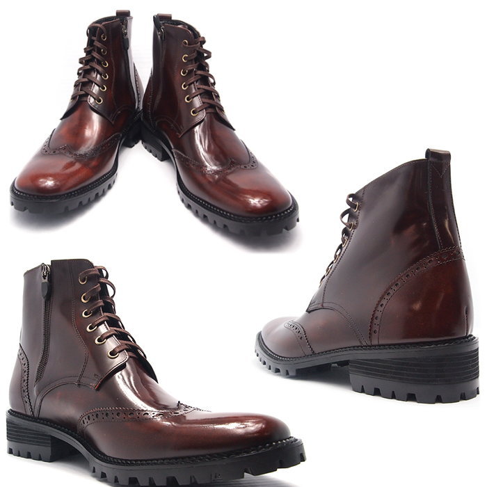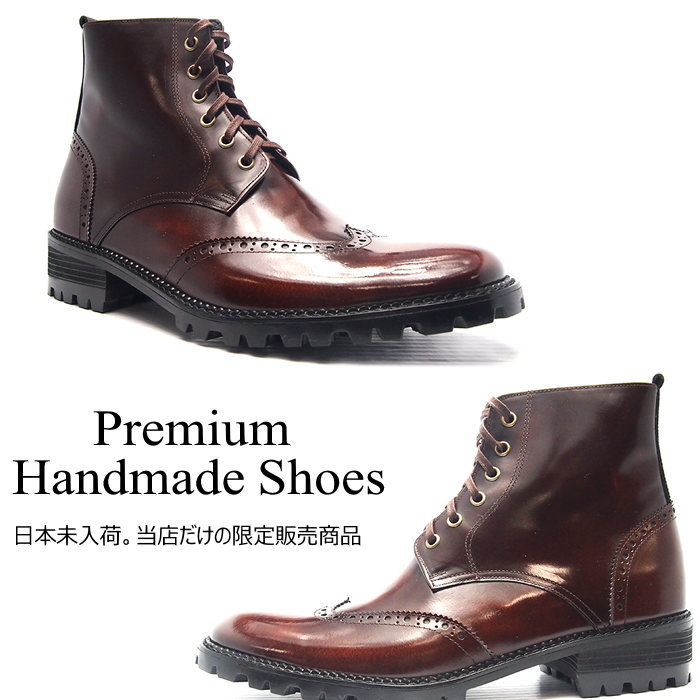 レザーウィングチップブーツ/全1色 ハンドメイドブーツ メンズブーツ ブーツ レースアップ レザー 本革 レザーブーツ ウィングチップ