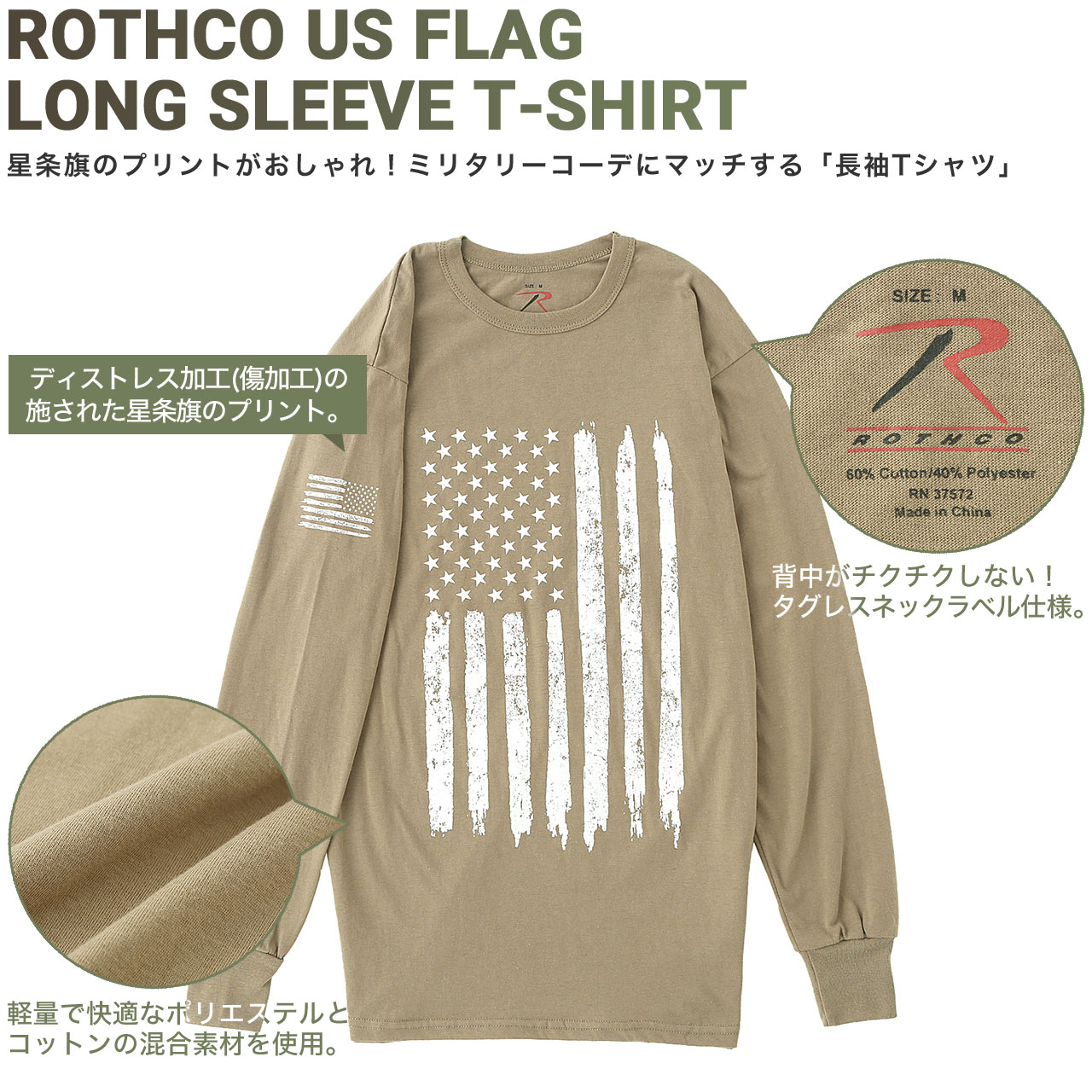 DESCRIPTION OF ITEM|商品説明・仕様 星条旗のプリントがおしゃれ!ミリタリーコーデにマッチする「長袖Tシャツ」 ● 軽量で快適なポリエステル・コットンの混合素材を使用。