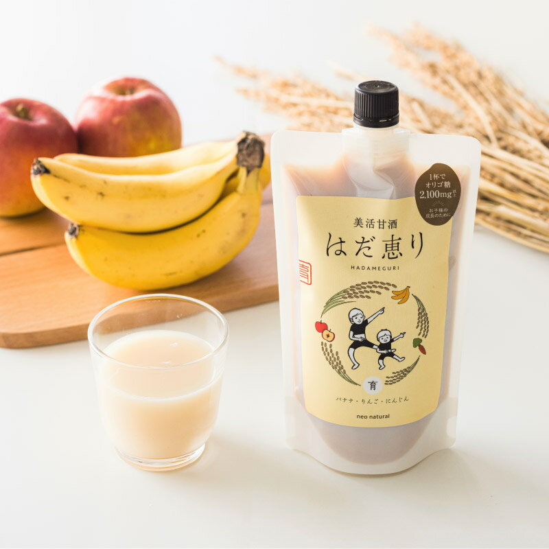 美活甘酒 はだ恵り ~育~ 大人から子どもまで家族で美味しくお飲みいただける、 オーガニックのバナナやニンジンを使用した甘酒。