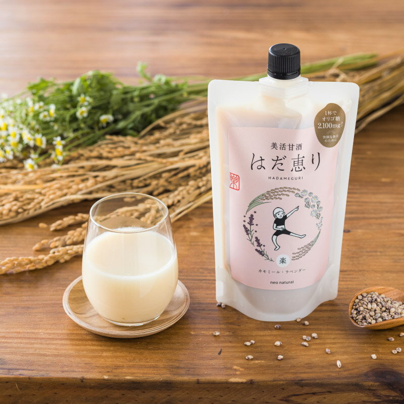 美活甘酒 はだ恵り~楽~ お米やはとむぎ、ヘチマなどの美容素材を3種の米糀と2種の酵素で熟成発酵させた美活甘酒。
