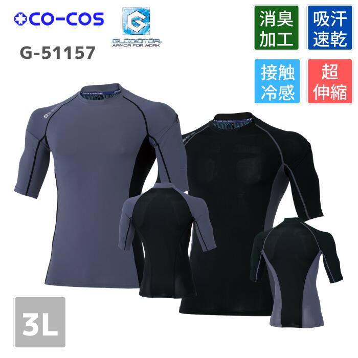 コーコス CO-COS 接触冷感ヘザーパターンクールパワーサポート長袖 G-51138 3L EL 春夏作業服 作業着 おしゃれ インナー ゴルフ スポーツ メンズ レディース 男女 ユニセックス 熱中症対策 吸汗速乾 ストレッチ 消臭 ランニング ジョギング ウォーキング