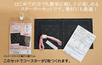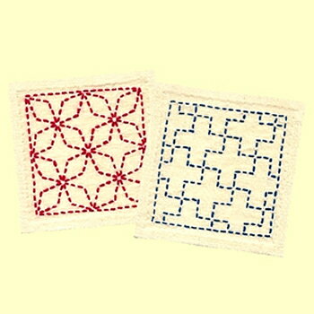 オリムパス刺し子キット(初心者向き)コースター(生成)角七宝・十字つなぎ