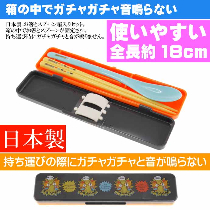 SIAA抗菌加工 銀イオン(AG)で抗菌 ケースの中で音鳴らない お箸とスプーン ケース入り SKATER(スケーター)キャラクターグッズ 入園 入学 グッズ 用品 給食セット 4973307530876 CCS3SAAG スイマー ブラザー のデザインの 日本製 お箸とスプーン箱入りセット(コンビセット)。