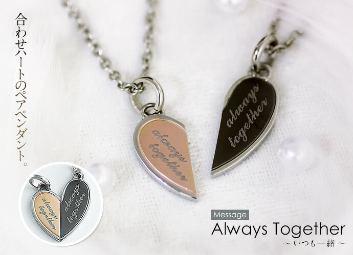 商品詳細 説明ペアで重ねるとハートになる、王道モチーフのペアペンダント。