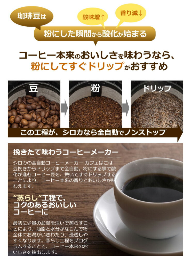 【正規品】シロカ 全自動コーヒーメーカー カフェばこ Siroca
