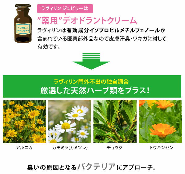 デオドラント ラヴィリン ジュビリーは厚生労働省の認可を受けた薬用デオドラントクリームです。