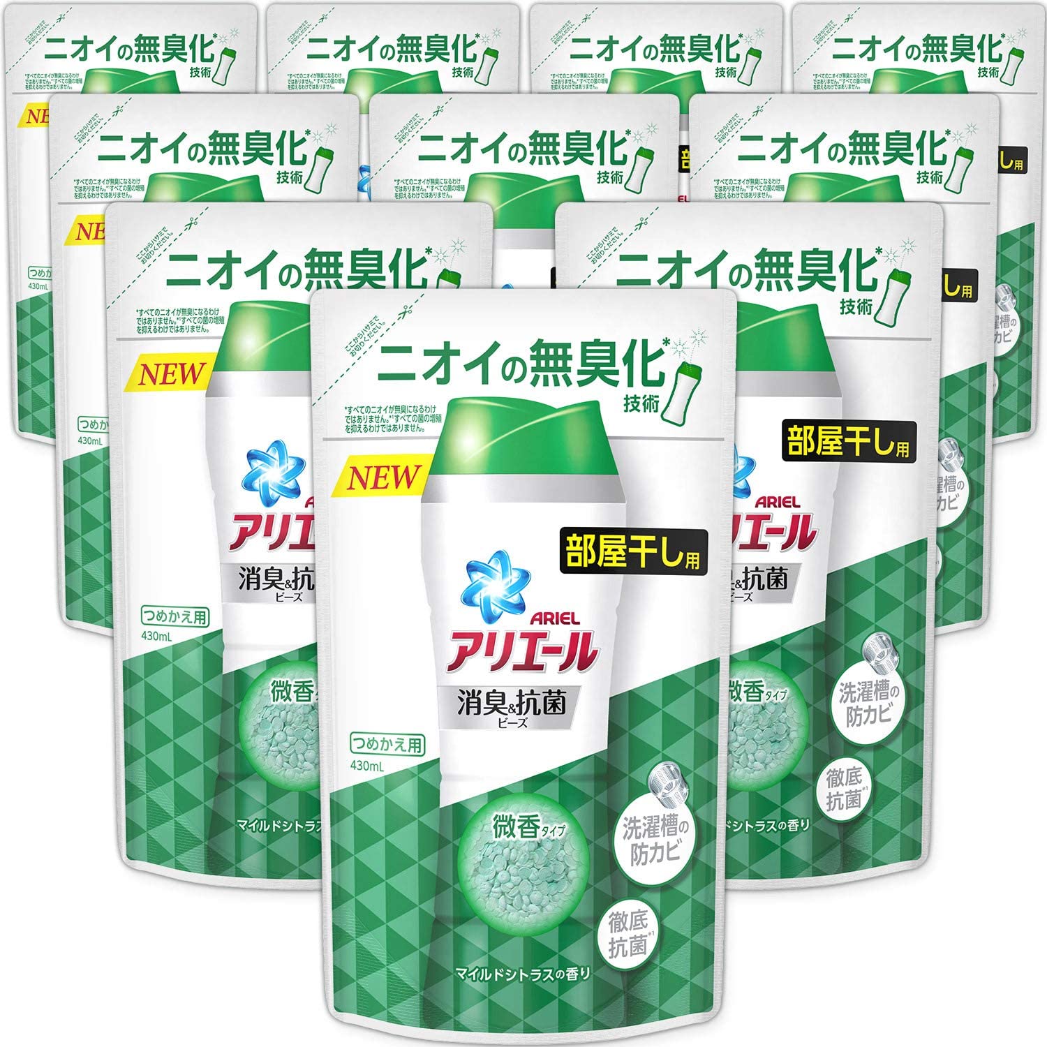 P&G アリエール 消臭&抗菌ビーズ 詰め替え 430mL×10袋 マイルドシトラス 部屋干し ケース販売 業務用 洗剤の7倍の消臭成分