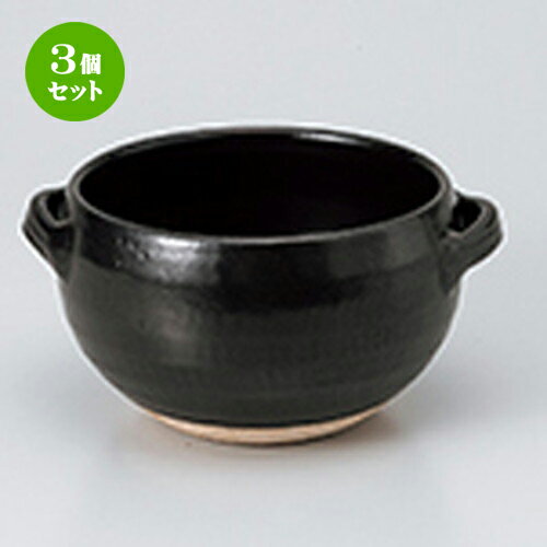 3個セット 耐熱食器 黒釉シチューボール [17.5 x 13.3 x 8cm] 【土物 直火 料亭 旅館 和食器 飲食店 業務用】