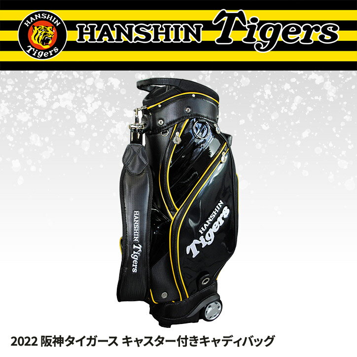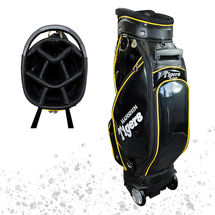 阪神タイガース 9.0型キャスター付きキャディバッグ 2022年モデルの解説 タイガースカラーの合成皮革採用しながらも落ち着いたデザイン。