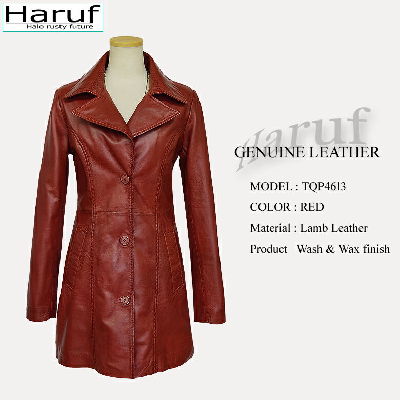 ブラック キャメル ネイビー レッド Item Information <商品明細> Model No <モデルナンバー> Haruf 羊革 ラムレザーコート レディース TQP4613 Color <カラー> レッド 赤 Material <素材> 表地:羊革(ラムレザー)裏地:ポリエステル Country of production <原産国> パキスタン Specification <仕様> ポケット×2 Accessories <付属品> ジャケットカバー(不織布) Time for delivery <納期> 14時までのご注文で即日発送(土日祝除く・会社休業日はサイト上に表記) Attention <ご確認ください> 返品条件:商品到着日より7日以内の返品・交換は可能。