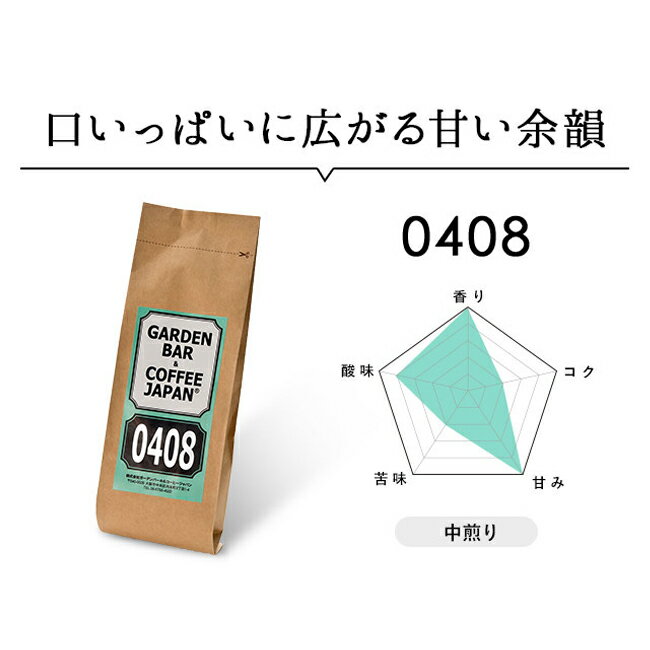 こだわりをとことん飲み比べて楽しめる! バリスタが厳選した3つの味 口いっぱいに広がる甘い余韻 0408 中煎り さわやかな香りと酸味が特徴のエチオピアをベースにブレンド。