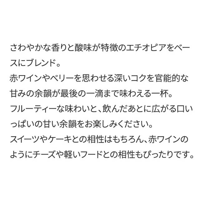特徴 《0408》 さわやかな香りと酸味が特徴のエチオピアをベースにブレンド。