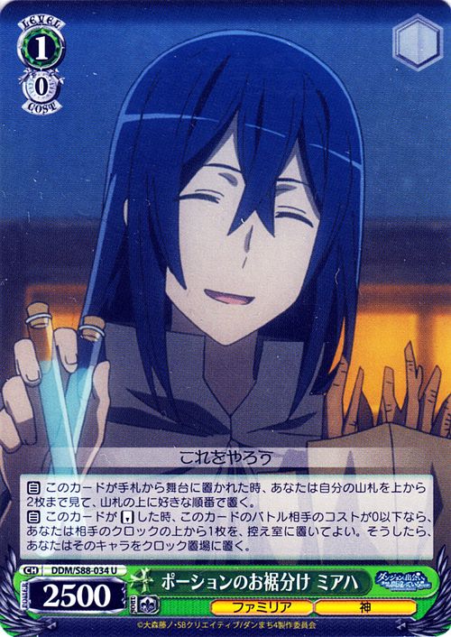 ヴァイスシュヴァルツ ダンジョンに出会いを求めるのは間違っているだろうか ポーションのお裾分け ミアハ U DDM/S88-034 | ダンまち ヴァイス シュヴァルツ 緑 キャラクター ファミリア 神